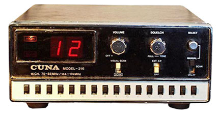 Bijzonderheden: Een van de eerste Nederlandse kristalscanners van de "Communicatie Unie Nederland Apparaten" oftewel CUNA. Geleverd met 4 gekleurde opschroefbare led-capjes bedoeld om de "speciale" kanalen extra te laten opvallen.